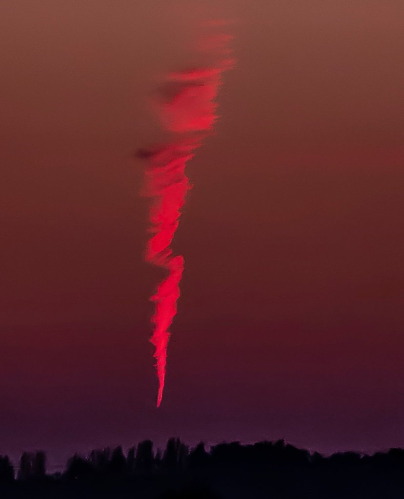 And check this out. A huge flaming red spiral over Cambridge, England on April 15.