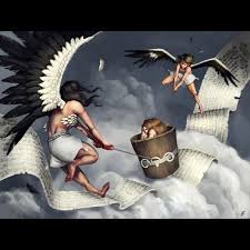 Then the angel who talked with me came out and said to me, “Lift your eyes now, and see what this is that goes forth.” So I asked, “What is it?” And he said, “It is a basket that is going forth.” He also said, “This is their resemblance throughout the earth: Here is a lead disc lifted up, and this is a woman sitting inside the basket”; then he said, “This is Wickedness!” And he thrust her down into the basket, and threw the lead cover over its mouth”. Zechariah 5:5-8