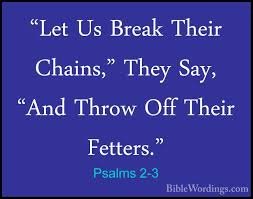 Why are the nations in an uproar And the people’s devising a vain thing? The rulers of the earth take their stand And the rulers take counsel together against the Lord and against his anointed, saying ‘Let us tear their fetters apart And cast their cords away from us!'” Psalm 2:3