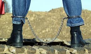 “A fetter is a chain or manacle used to restrain a prisoner, typically placed around the ankles … .”he lay bound with fetters of iron”