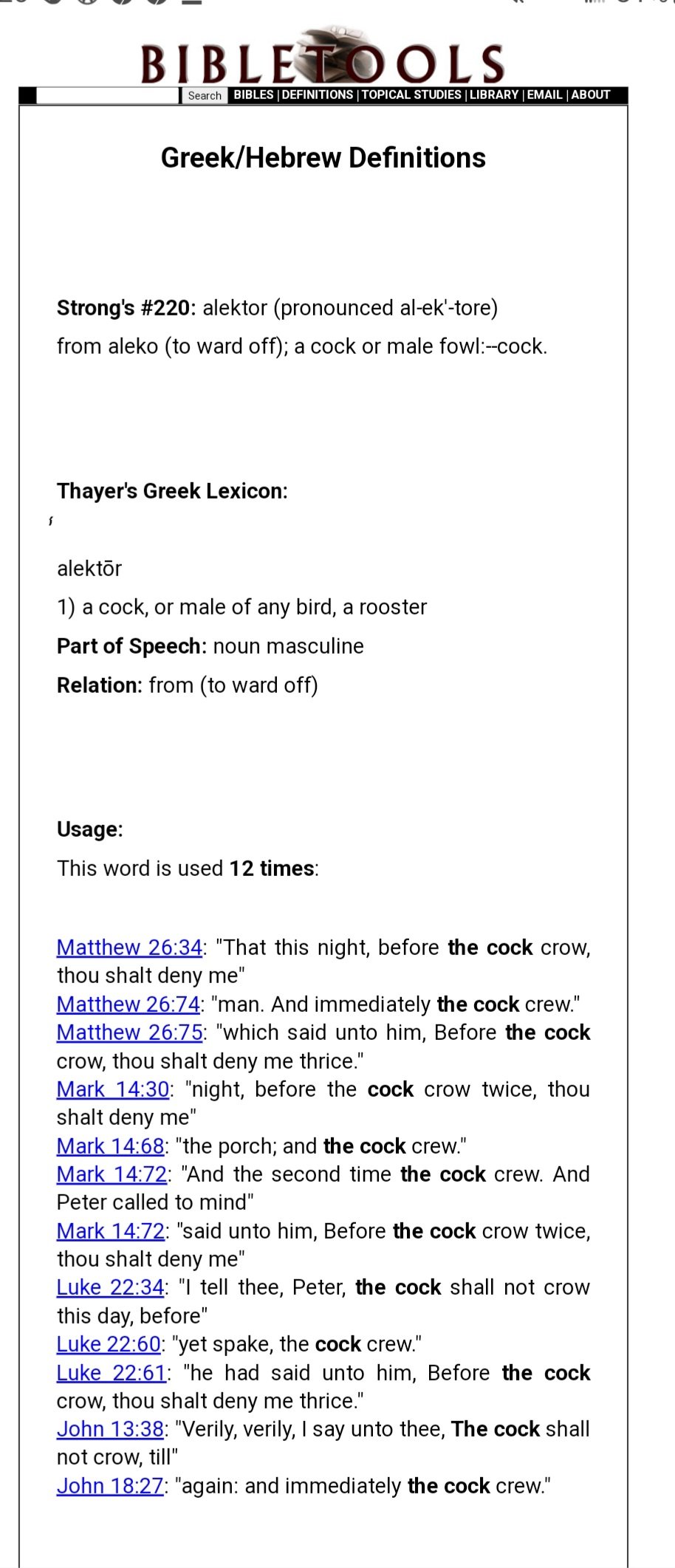 But are they really interested in testing their alert …or is it something else? The Strongs word 220 is rooster, yes – but in every case where it is used it is in regard to: