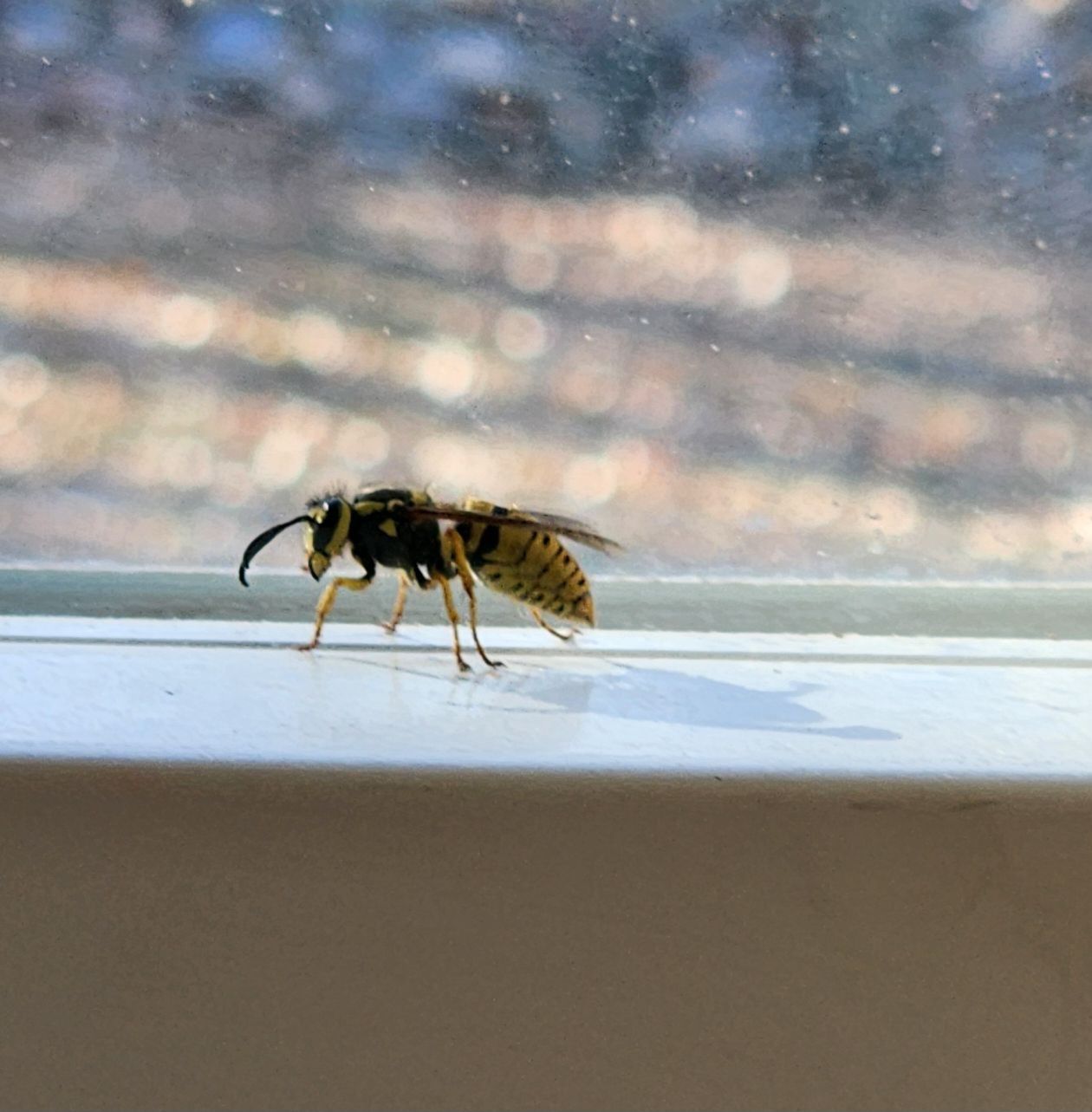 I was surprised to see this little fellow flitting around the inside of our living room window this morning. I don’t know how unusual that is for January in our particular climate but it has been unseasonably mild the last few days so I imagine that is why. My sister who lives in Nevada reports seeing wasps as well so perhaps its not that unusual.